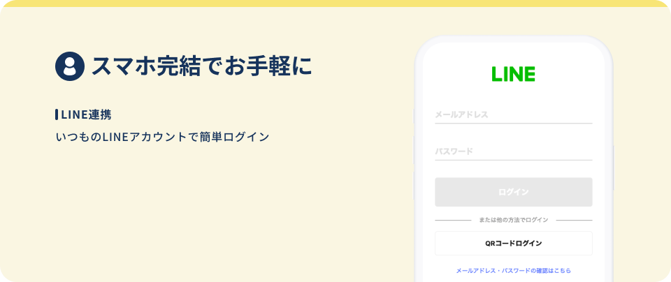 マイページにログイン後、アカウント情報画面から「LINE連携」ボタンを選択するだけで簡単に連携できます。連携後は、LINEアカウントを使って素早くログインが可能になります。